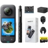 Includes 1x Insta360 X3, 1x 70cm Invisible Selfie Stick, 1x Motorcycle Mount Bundle, 1x 64GB microSD Card and 1x Lens Cap.