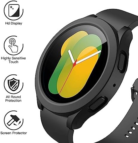 • High quality:This cover with a built-in screen protector is crafted from PC material and tempered glass, ensuring both durability and lightweightness. It will not only protect your Galaxy Watch from scratches and bumps, but also won’t weigh down your wrist.