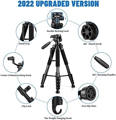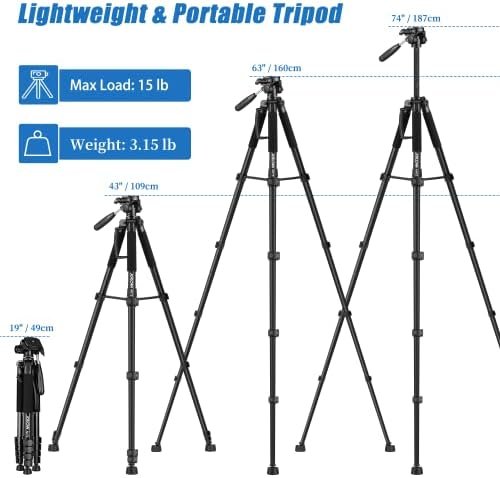 - Widely Application The heavy duty 74 inch camera tripod is suitable for photographing events and video recordings such as selfies, family portrait photos, parties, traveling, hiking, sports, YouTube, Vlog, video conferencing, online meetings, live streaming, recording games, yoga videos, outside with wind, and other activities indoors and outdoors. 3-position leg angle adjustment system helps you take photos flexibly for different scenarios and photography conditions.