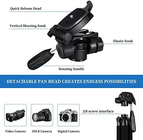 - 3-Way Pan Head 360° Rotation JOILCAN compact camera tripod is equipped with a stable smooth ergonomic 3-way pan head: headlock, pan lock, and tilt lock, which can satisfy all the needs of vertical, horizontal, and overhead photography, etc. You can freely adjustable angles for 360° panoramic shooting, 180°up and down shooting, and 90°vertical portrait. When you employ pans and tilts during photo or video recording, the tripod offers superb stability and gives you excellent, smooth results.