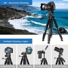 - Tripod for All Camera and Phone Additional quick-release plates and phone mount maximize the compatibility to the greatest extent. Standard 1/4″ screw mount compatible with all cameras (Nikon D3500, Fujifilm X-T200, Canon EOS 250D, Olympus, Panasonic), DSLR, SLR, webcams, compact camcorders, digital cinema cameras, projector, ring light, spotting scopes, and binoculars. The 360° phone mount is compatible with iPhone 14 13 12 11/11 Pro/XS Max/XS/XR/X/8/8 plus/ Galaxy Note 9/S10/S20.